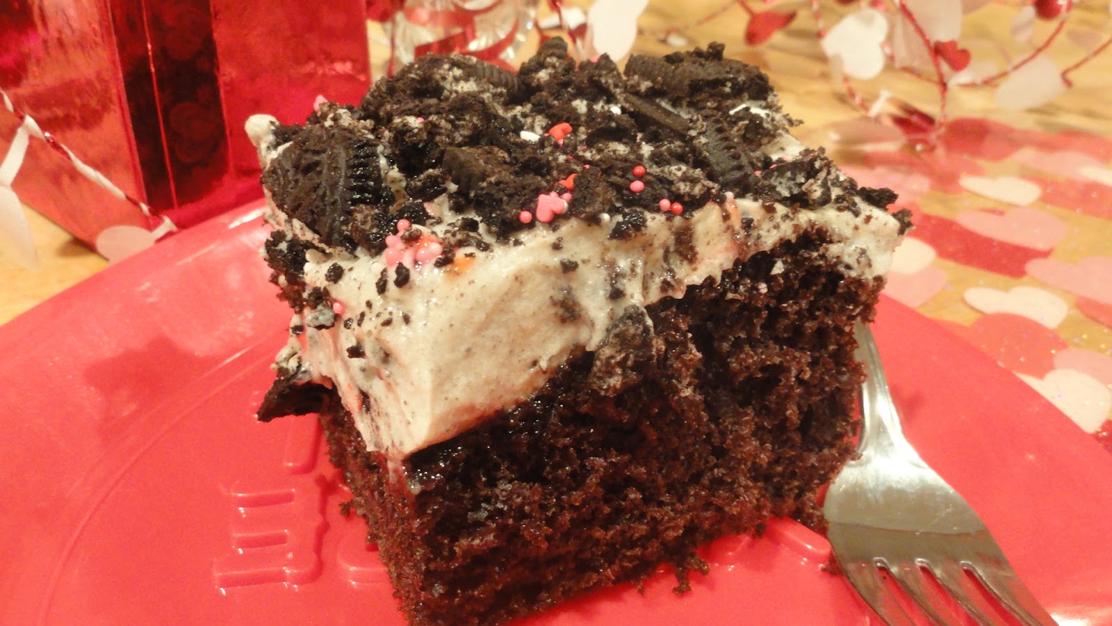 Luckily, the day got better. I made a fun, heart-filled dinner and this dessert. I found the link to this dessert on a friend's amazing craft blog (eighteen25.blogspot.com) and had to try it since I'm a nut for Oreos. The recipe was ridiculously easy and very delicious. My family, thank goodness, did not hurl this all over the floor.